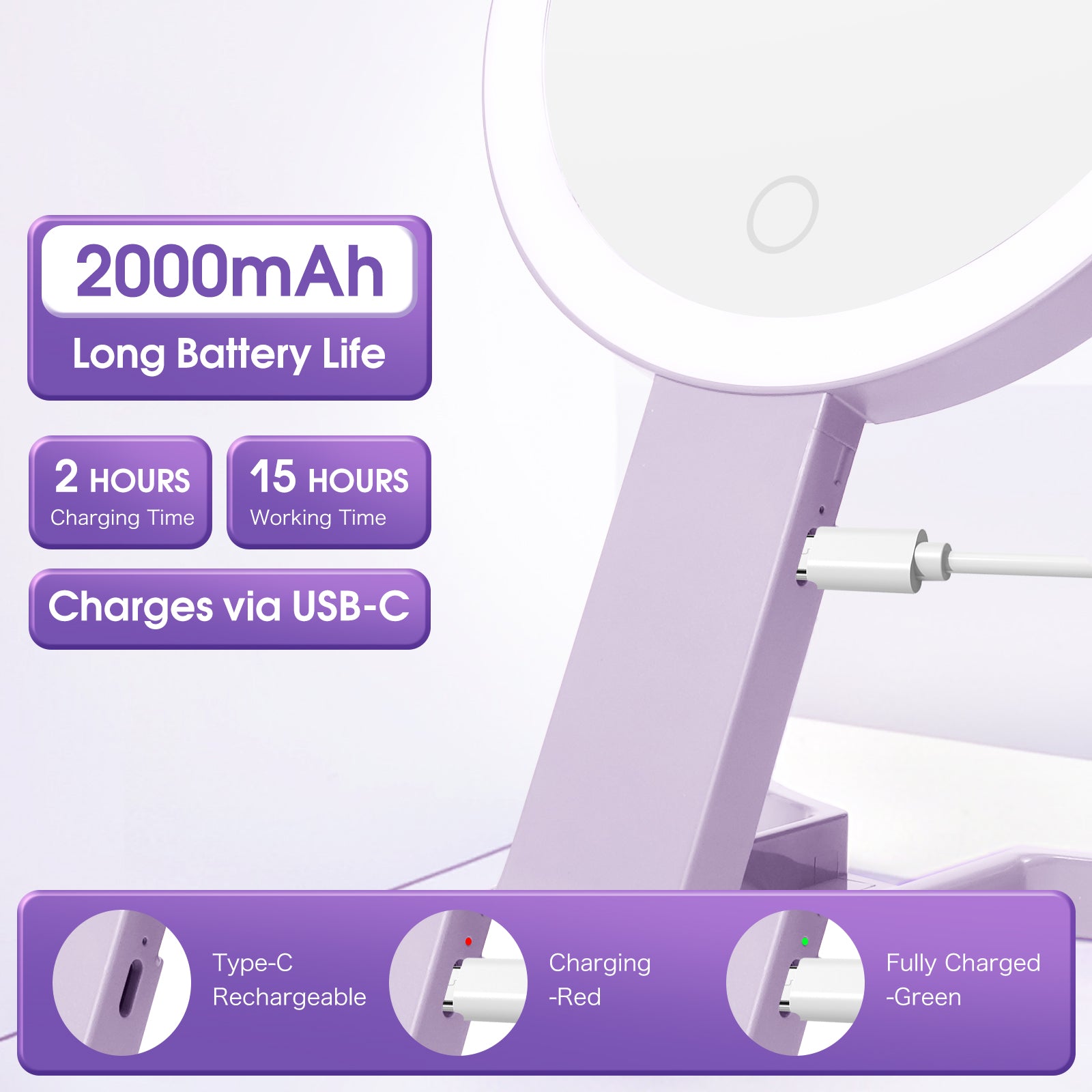 Rechargeable & Convenient: Built-in 1500mAh battery charges via Type-C (laptop, power bank, or charger)—no battery replacement needed.